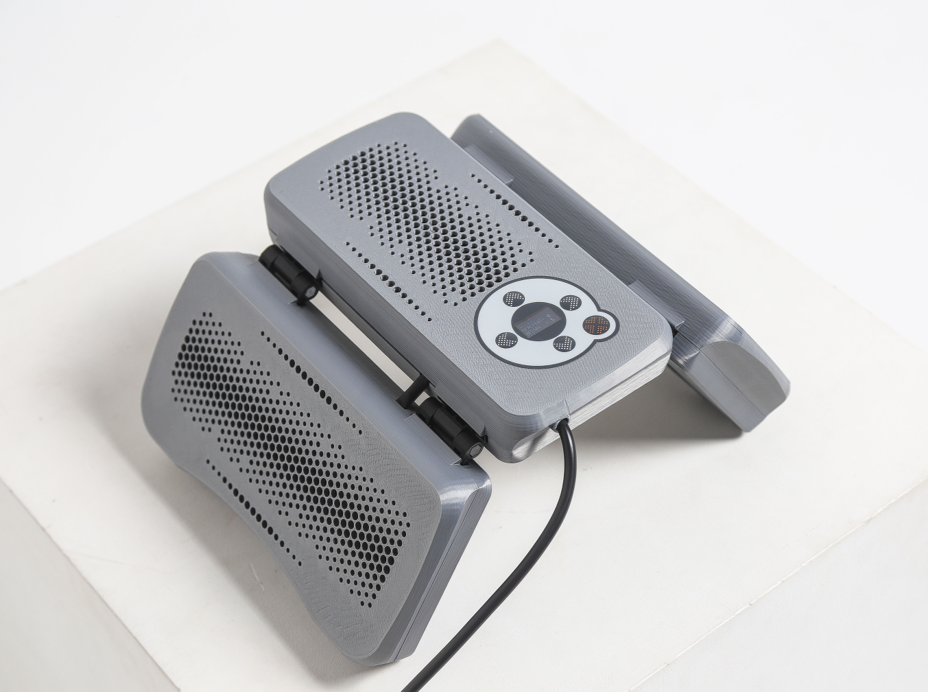 Самый компактный (40 х 26 х 4 см) и лёгкий (весом около 2 кг), подходит как для процедур в кабинетах, так и для проведения выездных процедур; возможность работы как в режиме одного света, так и в сочетании; регулируемые плотности мощности: до 30 мВ/см2 синего и до 60 мВ/см2 красного; простое управление программами процедур со встроенного модуля управления.